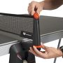 Сетка с регулировкой высоты и натяжения полотна. Материал полотна — практичный синтетический материал, который отлично зарекомендовал себя при использовании теннисного стола на открытом воздухе. Возможность регулировки натяжения центральной нити и высоты полотна относительно столешницы позволяет точно настроить все параметры сетки для максимально правильного игрового процесса.