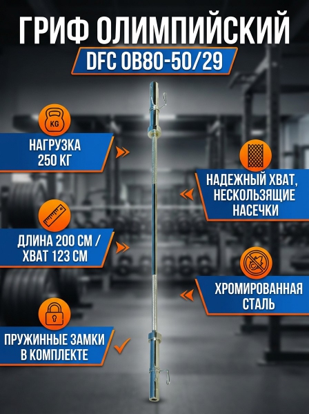 Гриф прямой DFC OB80-50/29 - ДоставкаДоставка по Санкт-Петербургу: бесплатно, 2-3 дня Доставка по России: стоимость уточняйте у оператора. Гриф прямой DFC OB80-50/29 - Отзывы5.0