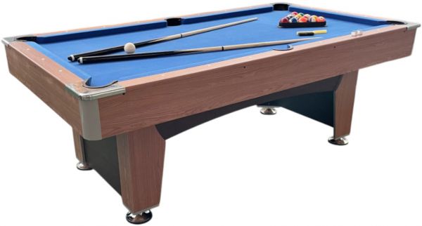 Игровой стол - бильярд DFC 84" G28403 - ОписаниеСомневаетесь? - Посмотрите рейтинг ТОП-10 по категории «Столы для бильярда»Игровой стол-бильярд DFC G28403 — идеальный вариант для домашнего использования. Он позволяет устраивать увлекательные игры для всей семьи, тренировать меткость и стратегическое мышление, а также организовывать досуг дома. Размер игрового поля составляет 188 х 92,5 см, что обеспечивает комфортное размещение шаров и свободное перемещение кия. Игровая поверхность выполнена из МДФ с покрытием ПВХ и бархатным сукном, что гарантирует долговечность, ровный ход шаров и приятное ощущение при игре. Толщина игрового поля — 18 мм, высота бортиков от поля — 36 мм, а их толщина — 12 мм, что обеспечивает стабильное отражение шаров при столкновениях. В комплект входят все необходимые аксессуары для игры: шарики, мел, кий, треугольник для выравнивания шаров и щётка для ухода за игровым полем. Длина кия 145 см делает игру удобной для игроков любого роста, а точная регулировка ножек и компенсаторы неровностей пола позволяют выставить стол идеально ровно, обеспечивая стабильность и безопасность во время игры. Высота ножек — 66 см, что создаёт комфортное положение для игры стоя. Игровой стол-бильярд DFC G28403 сочетает в себе качество, функциональность и стильный дизайн. Он станет отличным выбором для тех, кто ищет настольный бильярд для дома, позволяя наслаждаться игрой и развивать свои навыки в комфортных условиях.