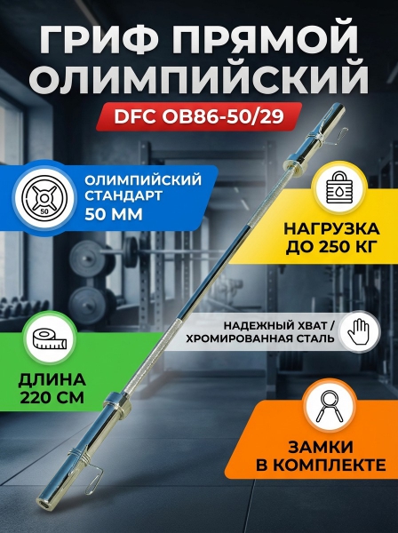 Гриф прямой DFC OB86-50/29 - ДоставкаДоставка по Санкт-Петербургу: бесплатно, 2-3 дня Доставка по России: стоимость уточняйте у оператора. Гриф прямой DFC OB86-50/29 - Отзывы5.0