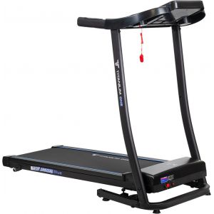 Хороший выбор для начинающих. В функционал включен весь базовый набор характеристик средне-бюджетной модели: двигатель повышенной мощности на 2 л. с., возможность измерения пульса с помощью сенсорных датчиков и регулировка уровня наклона полотна (здесь она ручная, в DFC T400 Vita Pro - автоматическая).