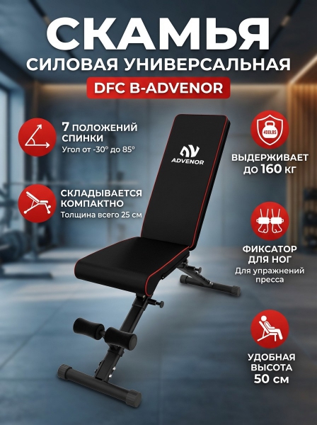 Cкамья силовая универсальная DFC B-Advenor - БрендDFC – бренд, поставляющий на рынок специализированные приборы и оборудование для красоты и здоровья.