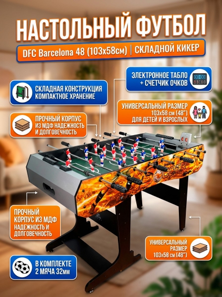 Складной настольный футбол DFC Barcelona 2 - Обзор ТОП-10 лучших столов для настольного футбола 2025 🏆: Обзор и рейтинг