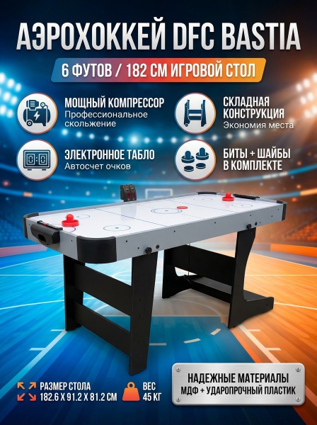 Игровой стол для аэрохоккея DFC Bastia 6 - Обзор ТОП-10 лучших столов для аэрохоккея 2025 🏆: Обзор и рейтинг