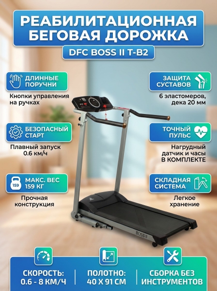 Беговая дорожка для реабилитации DFC Boss II T-B2 - ДоставкаДоставка по Санкт-Петербургу: бесплатно, 2-3 дня Доставка по России: стоимость уточняйте у оператора. Беговая дорожка для реабилитации DFC Boss II T-B2 - Отзывы5.0