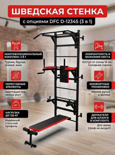 Шведская стенка с опциями DFC D-12345 - ДоставкаДоставка по Санкт-Петербургу: бесплатно, 2-3 дня Доставка по России: стоимость уточняйте у оператора. Шведская стенка с опциями DFC D-12345 - Отзывы0.0