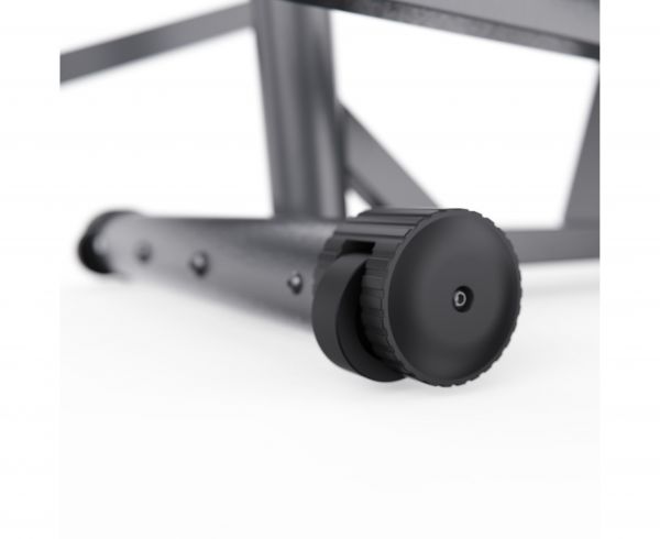 Также есть компенсаторы неровности пола, которые гарантируют стабильность тренажера, а транспортировочные ролики обеспечивают лёгкое и удобное перемещение, позволяя без труда менять его расположение в помещении.