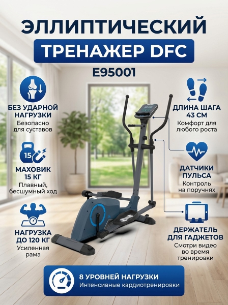 Эллиптический тренажер для дома DFC E95001 - ДоставкаДоставка по Санкт-Петербургу: бесплатно, 2-3 дня Доставка по России: стоимость уточняйте у оператора. Эллиптический тренажер для дома DFC E95001 - Отзывы0.0