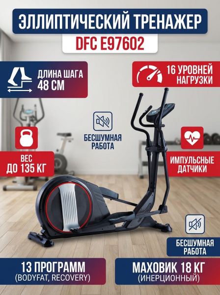 Эллиптический тренажер для дома DFC E97602 - ДоставкаДоставка по Санкт-Петербургу: бесплатно, 2-3 дня Доставка по России: стоимость уточняйте у оператора. Эллиптический тренажер для дома DFC E97602 - Отзывы0.0