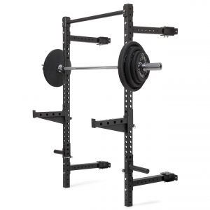 Рама имеет прямой турник, обработанный для предотвращения скольжения ладоней, подразумевающий несколько вариантов ширины хвата. Тренажер со свободными весами позволяет выполнять широкий спектр упражнений со штангой: приседания, жим, подтягивания на турнике, и другие силовые тренировки. Пара держателей под штангу легко устанавливается на разной высоте, всего 21 положение. Страховочные брусья так же быстро снимаются и переставляются на любую удобную высоту. На раме установлен прямой турник из твердой стали, в местах хвата руками поверхность с насечками против скольжения. Рама тренажера изготовлена из высококачественного стального профиля. Размер 50х50, толщина 1.5 мм. Порошковая покраска рамы в черный цвет. Резиновые ножки для надежной установки на полу не царапают поверхность.
