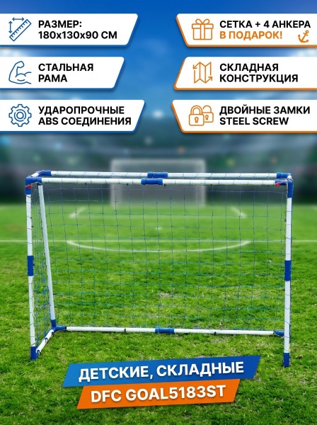 Ворота игровые стальные 6ft DFC GOAL5183ST - ОписаниеСомневаетесь? - Посмотрите рейтинг ТОП-10 по категории «Ворота для футбола»Ворота игровые футбольные 6 футов рекомендованы для игры на улице и в помещении. Складная конструкция поможет легко брать их с собой.