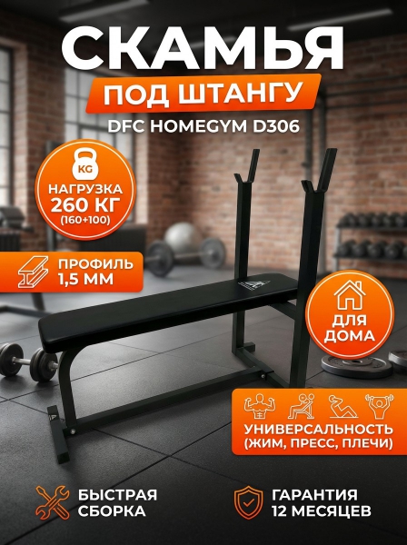 Скамья под штангу DFC Homegym D306 - ДоставкаДоставка по Санкт-Петербургу: бесплатно, 2-3 дня Доставка по России: стоимость уточняйте у оператора. Скамья под штангу DFC Homegym D306 - Отзывы5.0