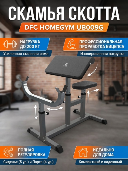 Скамья Скотта DFC Homegym UB009G серый - ДоставкаДоставка по Санкт-Петербургу: бесплатно, 2-3 дня Доставка по России: стоимость уточняйте у оператора. Скамья Скотта DFC Homegym UB009G серый - Отзывы0.0
