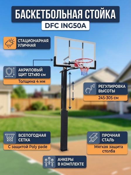 Баскетбольная стационарная стойка DFC ING50A - Описание
