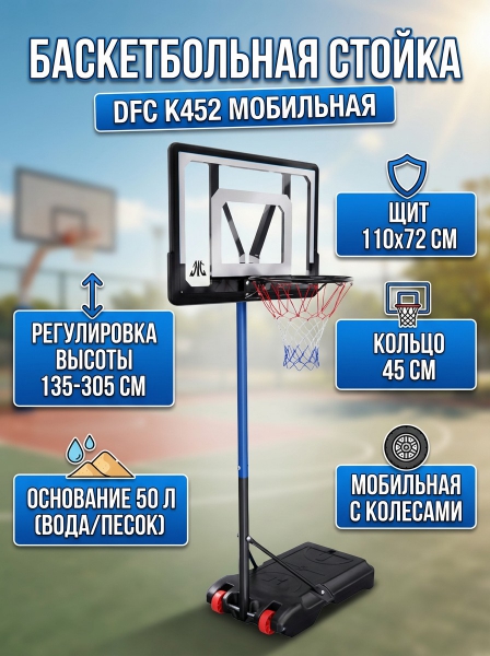 Баскетбольная мобильная стойка DFC K452 - ДоставкаДоставка по Санкт-Петербургу: бесплатно, 2-3 дня Доставка по России: стоимость уточняйте у оператора. Баскетбольная мобильная стойка DFC K452 - Отзывы0.0