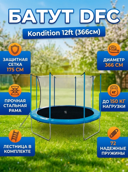 Батут каркасный с сеткой DFC Kondition 12 ft с лестницей - БрендDFC – бренд, поставляющий на рынок специализированные приборы и оборудование для красоты и здоровья.