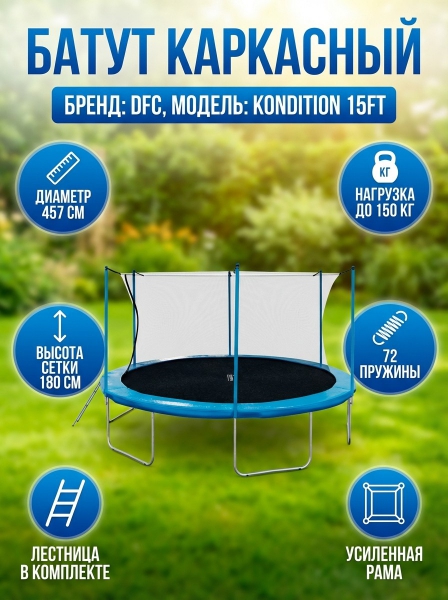 Батут каркасный с сеткой DFC Kondition 15 ft с лестницей - Обзор ТОП-10 лучших батутов 2025 🏆: Обзор и рейтинг