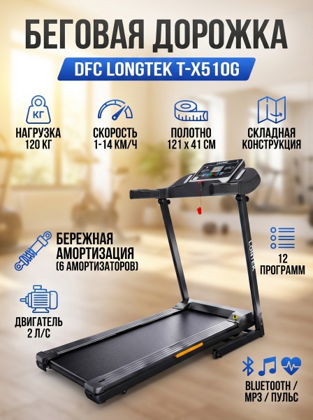 Беговая дорожка DFC LONGTEK T-X510G - ОписаниеСомневаетесь? - Посмотрите рейтинг ТОП-10 по категории «Домашние беговые дорожки»Беговая дорожка DFC LONGTEK — идеальный выбор для тех, кто хочет поддерживать физическую форму дома.