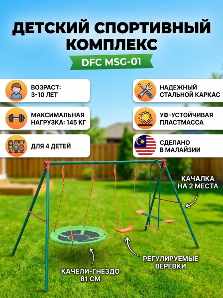 Детский комплекс с качелями DFC MSG-01 - БрендDFC – бренд, поставляющий на рынок специализированные приборы и оборудование для красоты и здоровья.