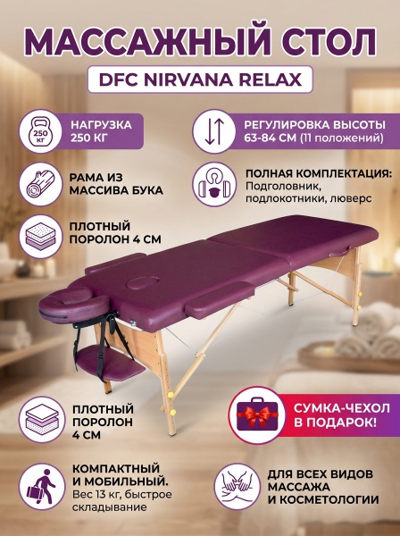 Массажный стол DFC Nirvana Relax сливовый - Обзор ТОП-10 лучших столов для массажа 2025 🏆: Обзор и рейтинг