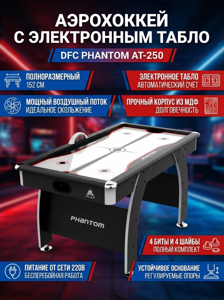 Игровой стол - аэрохоккей 60" DFC Phantom AT-250 - ДоставкаДоставка по Санкт-Петербургу: бесплатно, 2-3 дня Доставка по России: стоимость уточняйте у оператора. Игровой стол - аэрохоккей 60" DFC Phantom AT-250 - Отзывы5.0