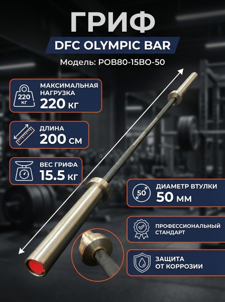 Гриф для штанги без замков DFC POB80-15BO-50 - БрендDFC – бренд, поставляющий на рынок специализированные приборы и оборудование для красоты и здоровья.