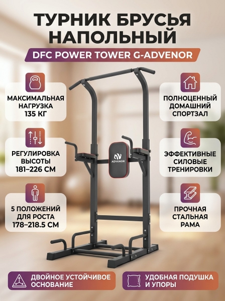 Турник-брусья DFC Power Tower G-ADVENOR - ДоставкаДоставка по Санкт-Петербургу: бесплатно, 2-3 дня Доставка по России: стоимость уточняйте у оператора. Турник-брусья DFC Power Tower G-ADVENOR - Отзывы5.0