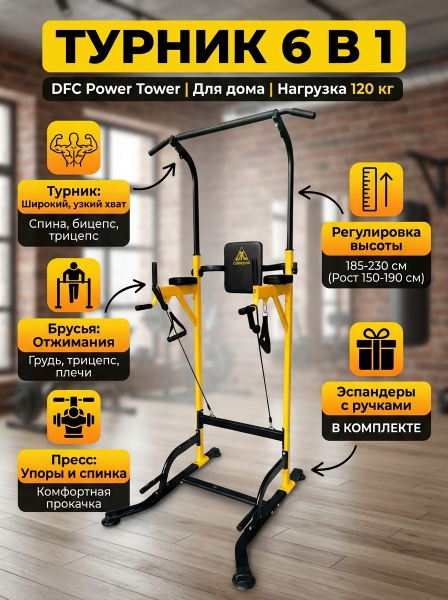 Турник-брусья DFC Power Tower Homegym G008Y - ДоставкаДоставка по Санкт-Петербургу: бесплатно, 2-3 дня Доставка по России: стоимость уточняйте у оператора. Турник-брусья DFC Power Tower Homegym G008Y - Отзывы5.0