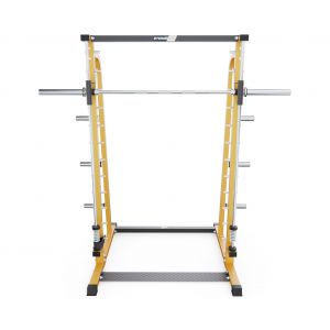 Рама имеет ограничители, выставляемые по высоте в любое удобное положение, а также турник с несколькими вариантами хватов, в том числе параллельным. Тренажер Машина Смита на базе силовой рамы. Позволяет выполнять широкий спектр упражнений для проработки различных групп мышц. В комплекте с рамой поставляется: гриф, турник с различным хватом, держатели для хранения дисков 5 см.