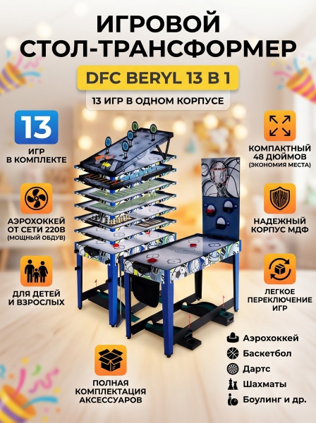 Игровой стол - трансформер DFC Pyrite 48" 13 in 1 AT-245 - БрендDFC – бренд, поставляющий на рынок специализированные приборы и оборудование для красоты и здоровья.