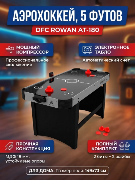 Игровой стол - аэрохоккей DFC ROWAN AT-180 - ДоставкаДоставка по Санкт-Петербургу: бесплатно, 2-3 дня Доставка по России: стоимость уточняйте у оператора. Игровой стол - аэрохоккей DFC ROWAN AT-180 - Отзывы0.0