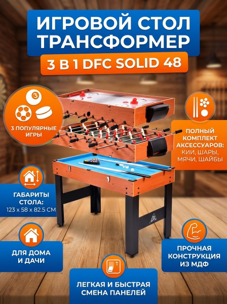 Игровой стол-трансформер 3 в 1 DFC SOLID 48" - Описание