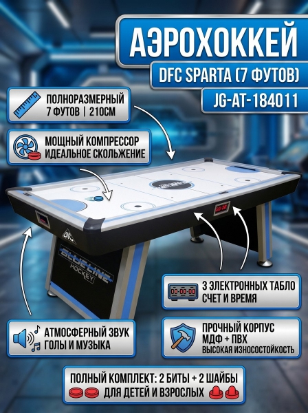 Игровой стол - аэрохоккей DFC SPARTA JG-AT-184011 - ДоставкаДоставка по Санкт-Петербургу: бесплатно, 2-3 дня Доставка по России: стоимость уточняйте у оператора. Игровой стол - аэрохоккей DFC SPARTA JG-AT-184011 - Отзывы5.0