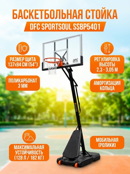 Баскетбольная мобильная стойка DFC SPORTSOUL SSBP5401 - ДоставкаДоставка по Санкт-Петербургу: бесплатно, 2-3 дня Доставка по России: стоимость уточняйте у оператора. Баскетбольная мобильная стойка DFC SPORTSOUL SSBP5401 - Отзывы0.0
