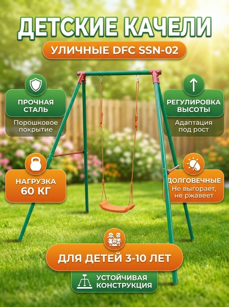 Уличные качели DFC SSN-02 - ДоставкаДоставка по Санкт-Петербургу: бесплатно, 2-3 дня Доставка по России: стоимость уточняйте у оператора. Уличные качели DFC SSN-02 - Отзывы5.0
