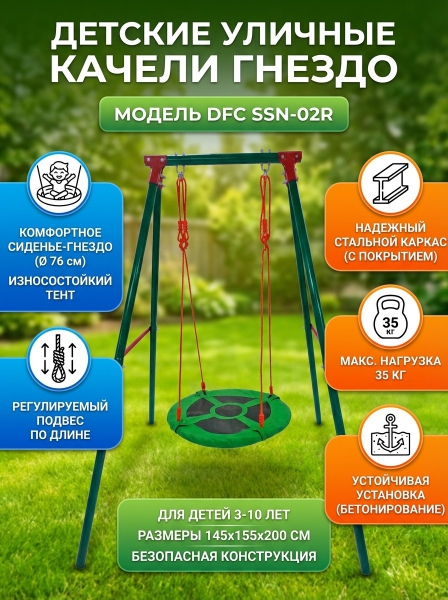 Уличные качели гнездо DFC SSN-02R - ДоставкаДоставка по Санкт-Петербургу: бесплатно, 2-3 дня Доставка по России: стоимость уточняйте у оператора. Уличные качели гнездо DFC SSN-02R - Отзывы5.0