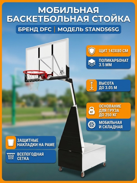 Баскетбольная мобильная стойка DFC STAND56SG - Обзор ТОП-10 лучших баскетбольных стоек 2025 🏆: Обзор и рейтинг
