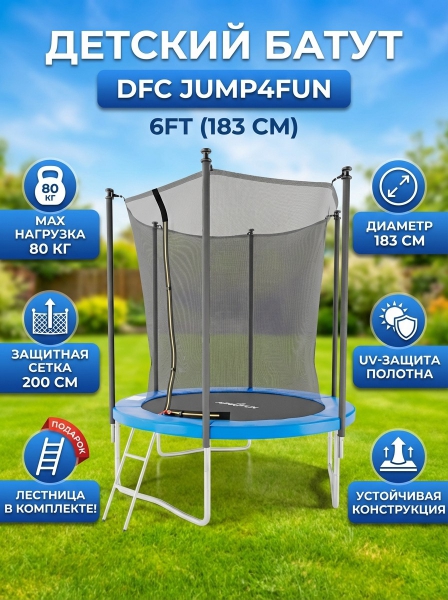 Батут с внутренней защитной сеткой DFC Trampoline STOCK 6 ft JUMP4FUN синий - Обзор ТОП-10 лучших батутов 2025 🏆: Обзор и рейтинг