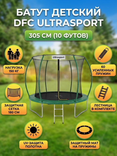 Батут с сеткой DFC Ultrasport 10 футов - БрендDFC – бренд, поставляющий на рынок специализированные приборы и оборудование для красоты и здоровья.