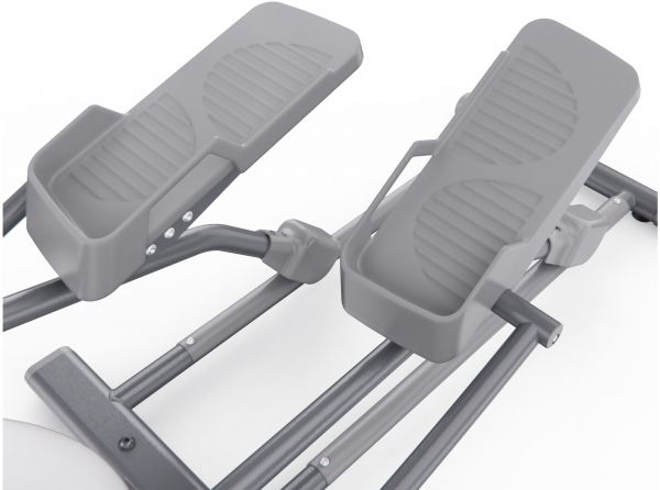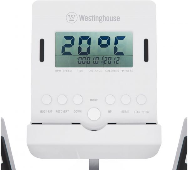 Кросстрейнер DFC Westinghouse WE13M-WH - ОписаниеЭллиптический тренажёр DFC Westinghouse WE13M-WH — это мощный и удобный кардио тренажёр, созданный специально для домашнего использования. Он обеспечивает полноценную аэробную нагрузку на все группы мышц без ударной нагрузки на суставы, помогает сжигать калории, развивать выносливость и улучшать сердечно-сосудистую систему. Модель способна выдержать пользователя весом до 120 кг. Тренажёр оснащён магнитной системой нагрузки, которая обеспечивает надёжную и плавную регулировку сопротивления. Механическая регулировка с 8 уровнями нагрузки позволяет легко подобрать оптимальную интенсивность тренировки, а увеличенный инерционный вес маховика 15 кг способствует плавной и стабильной работе тренажёра, создавая комфортные условия для длительных и эффективных тренировок. Нескользящие педали обеспечивают отличное сцепление даже при интенсивных занятиях. Они просторные, устойчивые и предотвращают проскальзывание стоп, обеспечивая дополнительную безопасность. Длина шага составляет 51 см, что позволяет комфортно тренироваться как высоким, так и невысоким пользователям, делая движение естественным и эффективным. Все данные отображаются на LCD-дисплее, где вы можете отслеживать ключевые параметры: сканирование, скорость, темп, время, дистанцию, калории и пульс. Для удобного контроля за состоянием организма во время тренировки на поручнях установлены сенсорные датчики пульса. В комплекте две батарейки типа АА. Для устойчивости тренажёр оснащён компенсаторами неровности пола, благодаря которым он надёжно стоит даже на неидеальной поверхности. Встроенные транспортировочные ролики позволяют легко переместить тренажёр с места на место, что особенно удобно при использовании в ограниченном пространстве. Эллиптический тренажёр DFC Westinghouse WE13M-WH — это оптимальное сочетание надёжности, комфорта и функциональности. Тренажёр продуман до мелочей: есть держатель для бутылки, чтобы вода всегда была под рукой, и держатель для планшета или телефона, позволяющий смотреть видео или слушать музыку во время тренировки.