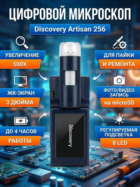 Микроскоп цифровой Discovery Artisan 256 - ДоставкаДоставка по Санкт-Петербургу: бесплатно, 2-3 дня Доставка по России: стоимость уточняйте у оператора. Микроскоп цифровой Discovery Artisan 256 - Отзывы0.0