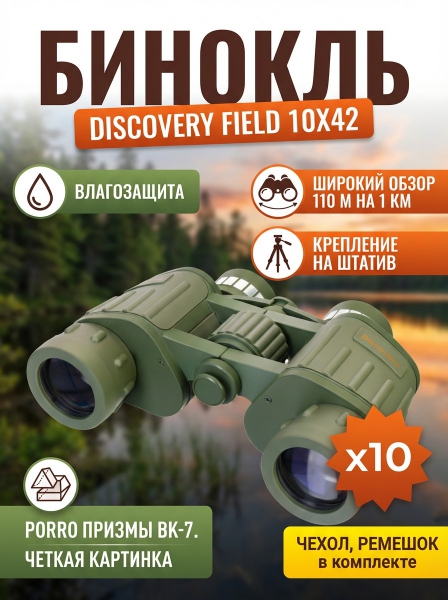 Бинокль для охоты и рыбалки Discovery Field 10x42 - БрендСтрана бренда: США Премиальность бренда:Посмотреть все бинокли для туризма и путешествий Discovery (4) Бинокль для охоты и рыбалки Discovery Field 10x42 - Характеристики