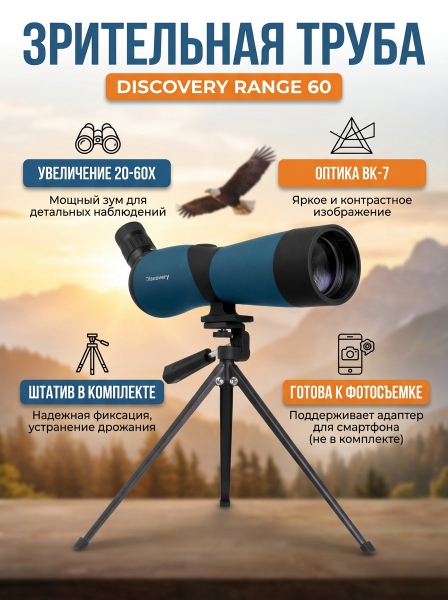 Зрительная труба Discovery Range 60 - ДоставкаДоставка по Санкт-Петербургу: бесплатно, 2-3 дня Доставка по России: стоимость уточняйте у оператора. Зрительная труба Discovery Range 60 - Отзывы0.0