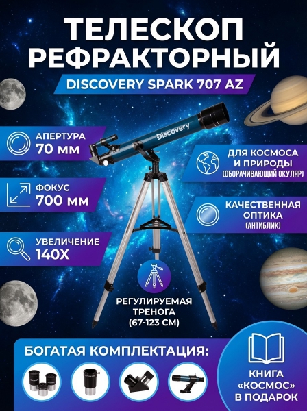 Телескоп рефракторный Discovery Spark 707 AZ с книгой