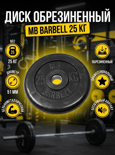 Диск обрезиненный MB Barbell MB-PltB51-25 - БрендMB Barbell – это торговая марка, представляющая специализированное и высококачественное оборудование для оснащения спортивных залов.
