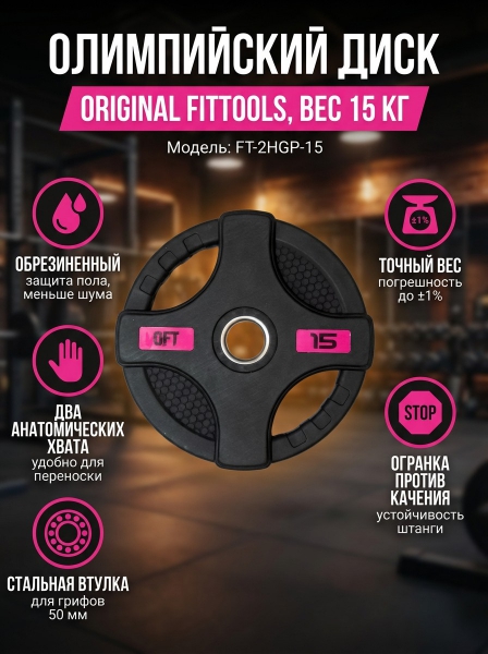 Диск черный с двумя хватами Original FitTools FT-2HGP-15 - Преимущества