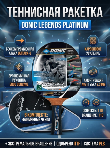 Теннисная ракетка Donic Legends Рlatinum - ДоставкаДоставка по Санкт-Петербургу: бесплатно, 2-3 дня Доставка по России: стоимость уточняйте у оператора. Теннисная ракетка Donic Legends Рlatinum - Отзывы0.0
