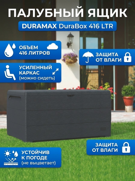 Палубный ящик Duramax DuraBox 416 LTR 86602 - БрендСтрана бренда: США Страна производства: Объединённые Арабские Эмираты Премиальность бренда:Палубный ящик Duramax DuraBox 416 LTR 86602 - Характеристики