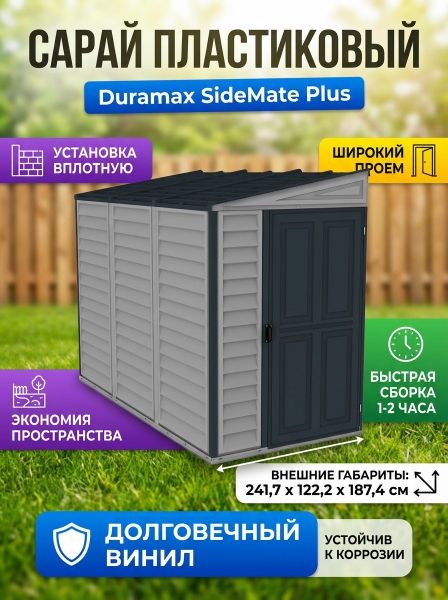 Пластиковый сарай Duramax SideMate Plus 36625V8 - ДоставкаДоставка по Санкт-Петербургу: бесплатно, 2-3 дня Доставка по России: стоимость уточняйте у оператора. Пластиковый сарай Duramax SideMate Plus 36625V8 - Отзывы0.0