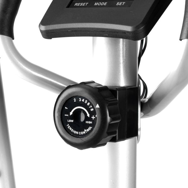 Модель способна выдержать пользователя весом до 110 кг. Тренажёр оснащён магнитной системой нагрузки с инерционным весом маховика 7 кг. Механическая регулировка сопротивления с 8 уровнями нагрузки позволяет подобрать оптимальную интенсивность тренировки в зависимости от подготовки пользователя.